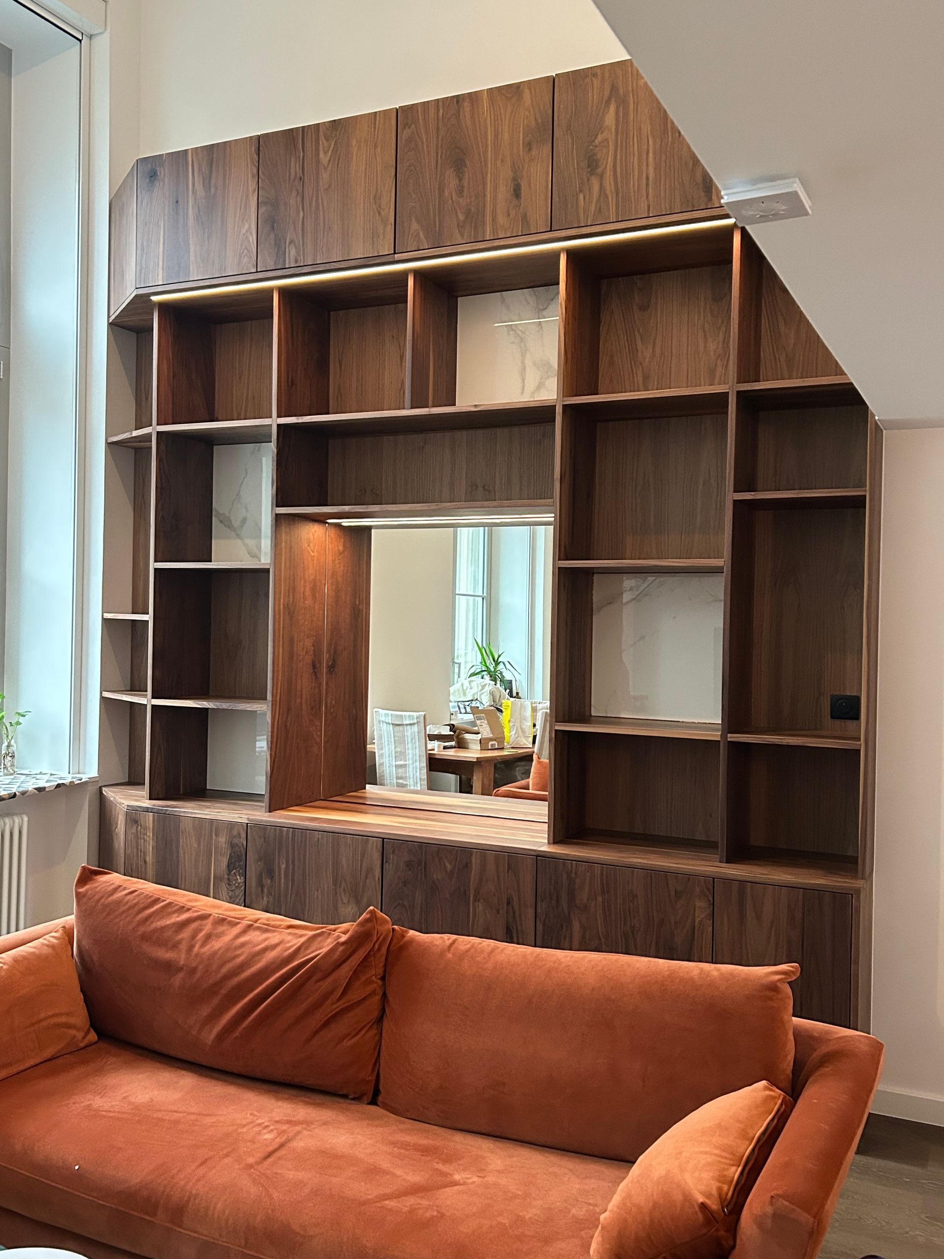 Verrière, bibliotheque, boiserie